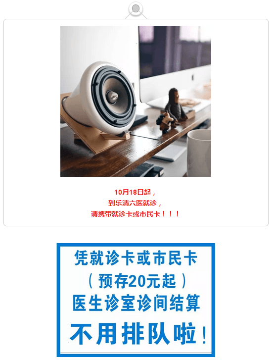 【热点关注】乐清六医门诊一卡通(预交金)就诊流程项目将于明日正式上线,为您大大减少排队的苦恼!