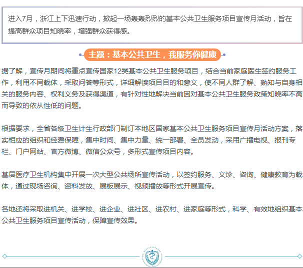 我服务,您健康:浙江本月掀起基本公共卫生服务项目宣传热潮