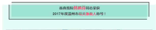 【喜讯】恭喜我院林鹏芬同志荣获 2017年度温州市最美急救人称号 !