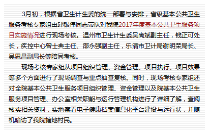 省专家组对我院公共卫生服务工作进行现场考核