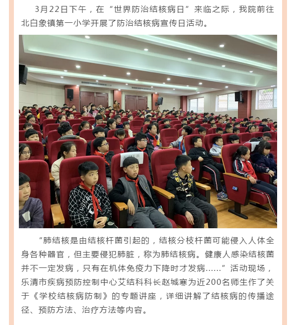 筑牢校园健康“防火墙”丨我院结核病知识宣传活动走进北白象镇第一小学