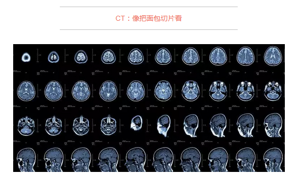 CT的检查原理是X光会分层穿过人体,之后通过电脑计算后二次成像,就像把一片面包切成片来看。优点是可以分层看,经计算后可以显示出更多的组织信息。