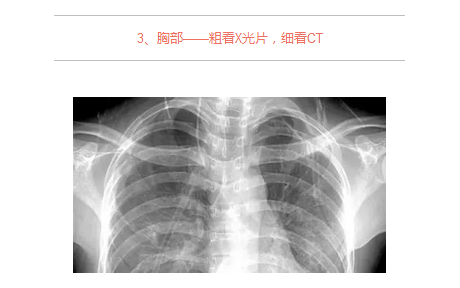 X光胸片可粗略检查心脏、主动脉、肺、胸膜、肋骨等,可以检查有无肺纹理增多、肺部钙化点、主动脉结钙化等。