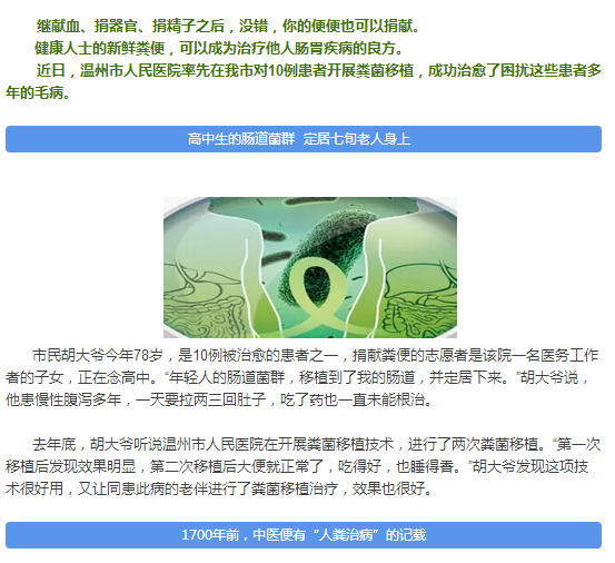 捐献粪便能救人!温州一高中生的粑粑治好七旬大爷的肠病