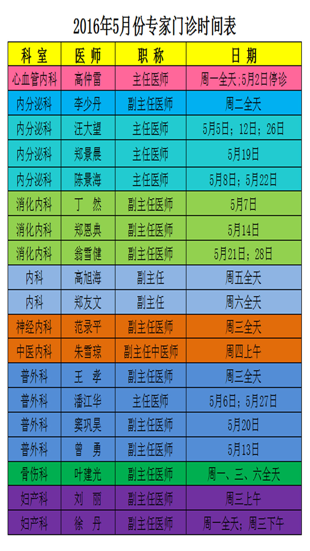 五一假期&五月专家门诊安排早知道