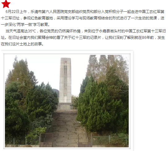 弘扬革命精神,强化责任担当,争做合格党员——我院党支部赴中国工农红军第十三军旧址参观学习