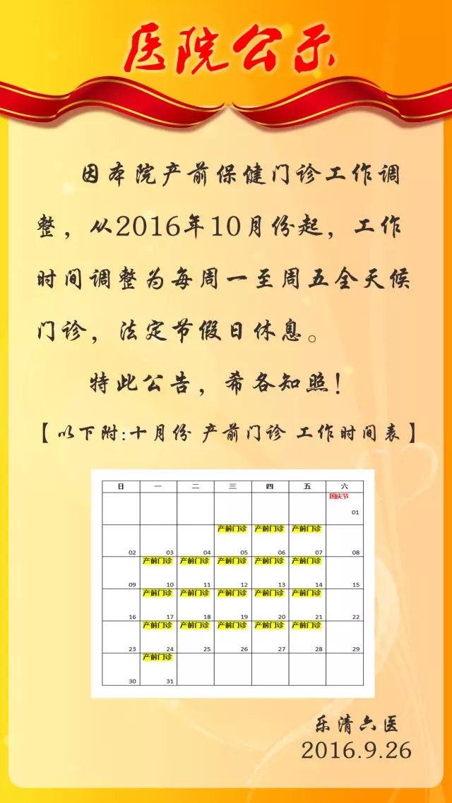 产前保健门诊工作时间调整通知